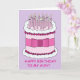 Un grand gâteau d'anniversaire rose caricature, accompagné des mots "Bonne tante d'anniversaire". L'image a un fond de couleur mauve.