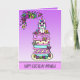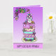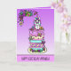 Adorable licorne blanche dessinée à la main avec un papillon sur le nez, entourée de fleurs et assise sur une délicieuse carte d'anniversaire de gâteau pour une petite fille. Personnalisé en ajoutant le nom de la fille d'anniversaire sur le devant de la carte.
