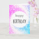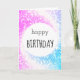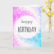 Cette carte d'anniversaire comporte les mots "Joyeux anniversaire" sur le devant avec un effet de teinture rose et bleu cravate inspiré dans l'arrière - plan. L'intérieur dit : "J'espère que votre journée spéciale est remplie de tout ce que vous aimez. Joyeux anniversaire !".