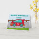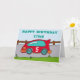 Une carte de voeux joyeux anniversaire voiture de course. Une carte d'anniversaire personnalisable pour les enfants, spécialement pour un garçon. Cette carte a une voiture de course rouge avec un numéro d'âge et roule sur une route.