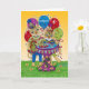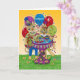 C'est une journée spéciale pour enfant et cette carte est prête pour le nom et l'âge de l'enfant d'anniversaire. Ou vous avez l'option pour aucun nom du tout. Illustrated Papa chat avec un enfant chaton sont prêts à célébrer avec leurs amis de rat et d'oiseau autour d'un bain d'oiseau. Des présents et des ballons colorés en font un tee super fun pour le grand jour ! Design original par artiste © 2016 Laura J. Holman. Cet art ne fait pas partie du domaine public. Disponible seulement ici sur Zazzle.