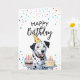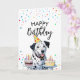 Carte Joyeux Chien dalmate tenant des gâteaux Anniversai
