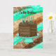 Turquoise et marron Bonne carte d'anniversaire pour un frère. Joli dessin à la main de gâteau au chocolat, bougies et cadeaux.
