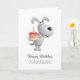 Cette joyeuse carte d'anniversaire présente une illustration de dessin du mignon chiot gris. Little Dog tient un joli gâteau d'anniversaire avec une bougie éclairée. Le dos de la carte est juste de gâteau. Gret Card à envoyer à n'importe qui, surtout s'il ou elle est un amoureux des chiens. Personnalisez le texte dans la partie inférieure de la carte à l'aide des outils en ligne Zazzle. Si vous avez besoin d'aide pour personnaliser cette carte, n'hésitez pas à me contacter via Zazzle, s'il vous plaît.