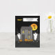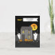 Une simple illustration d'une maison hantée la nuit, avec des fantômes, des chauves-souris, des citrouilles et des os. Il y a un avion qui survole la maison avec une banderole derrière qui dit 'Joyeux Halloween à une demi-soeur très spéciale'.