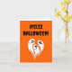 Carte d'Halloween espagnole. Carte Joyeux Halloween (Joyeux Halloween en espagnol). Texte en langue espagnole, Feliz Halloween (Joyeux Halloween en langue espagnole) et illustration d'Halloween. Message à l'intérieur de la carte, Feliz Halloween (Joyeux Halloween en espagnol).