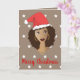 Carte Joyeux Noël! Black Woman Santa Hat White Stars