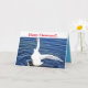 Carte Joyeux Noël Cygne représentant une photographie unique d'un magnifique cygne blanc muet sur la couverture. À l'intérieur, il y a une photographie d'arbres argentés magnifiques sur fond bleu avec un texte de vœux de Noël à l'intérieur. Parfait pour les amoureux de la nature et les personnes qui aiment les cygnes. Peut être personnalisé pour être plus personnel.