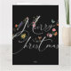 Une carte de voeux Joyeux Noël pliée avec des fleurs sauvages, papillon et noir design moderne.