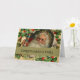 Une carte de Noël classique vintage du Père Noël et du houx avec le Père Noël sortant de la carte. Cette illustration de Noël est basée sur une carte de Noël à l'ancienne du 19e siècle, époque victorienne, avec un Père Noël classique nous souriant.