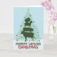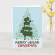 Cette carte de "Joyeux Noël végan " présente un sapin de Noël avec des animaux de la ferme.