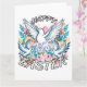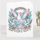 Joyeux Pâques ! avec une image colorée et joyeuse du printemps, avec des colombes et des fleurs.