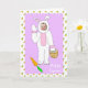 Bonne carte de Pâques. Carte mignonne violette avec arrière - plan carotte, avec un adorable lapin de Pâques avec la photo de votre enfant à l'intérieur, que vous pouvez télécharger dans la zone personnalisée!