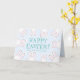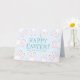 Carte Joyeux Pâques turquoise blanc mignon lapin personn
