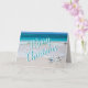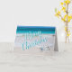 Cartes de Noël de plage pliées avec étoiles de mer et modèles de texte. "Joyeux Noël" sur le devant en grandes lettres blanches peut être changé à n'importe quel salut que vous choisissez. À l'intérieur, ajoutez un message et une signature. Deux étoiles de mer sont décorées d'ornements arborés et sont disposées sur une scène de plage d'eau bleu turquoise et de sable fin. Choisissez parmi 3 tailles.