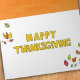L'intérieur est décoré de petites feuilles d'automne colorées et le texte est "Joyeux Thanksgiving".