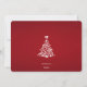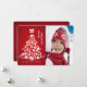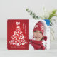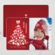 Des icônes de Noël familières telles que des flocons de neige, des cloches, des sucres de canne, des bonhommes de neige et plus encore forment une forme d'arbre de vacances surmontée d'un arc contre un arrière - plan rouge radiant. Votre photo préférée complète la carte.