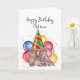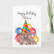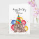 Amusant Joyeux Anniversaire Vieux humour de carte Timer. Vieux hibou grincheux avec un coup d'anniversaire et des ballons. Texte intérieur : Vous n'êtes pas vieux avant de commencer à vérifier l'horloge pour voir s'il est assez tard pour aller au lit.