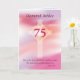 Un jubilé de diamant est une occasion très spéciale. Cette carte montre une croix sur le devant avec un motif diamant sur la croix. Les rayons s'écartent du centre de la croix où le numéro 75 est mis en surbrillance. L'arrière - plan multicolore est aux couleurs rose, violet et pêche. Une citation d'Écriture réjouissante est en bas.
