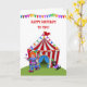 A fun and colorful birthday greeting with juggling clown, dog and circus tent. Created with original artwork ©delightful-doodles.