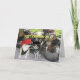 Une image différente de cycliste Bubba. Il a un bandana rouge attaché sur son chef juste comme beaucoup de cyclistes. Il a également un gilet en cuir et des nuances. Mikie a un casquette noir et un bandana de noir et d'argent. Le vélo à l'arrière-plan est grâce à PublicDomainPictures.net. Texte sur l'avant : "JUSTE CRUISIN DANS… "l'intérieur : … POUR VOUS SOUHAITER LE JOYEUX ANNIVERSAIRE !" Vous pouvez customiser le texte. N'était pas sûr au sujet de la masselotte appropriée de cycliste.