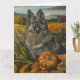 Célébrez la beauté de la chute avec cette peinture vibrante d'un chien assis à côté d'une généreuse moisson de Thanksgiving. Les riches couleurs d'automne des citrouilles, des tournesols et des paysages rustiques des fermes créent une atmosphère chaleureuse et accueillante, parfaite pour toute décoration saisonnière amoureux des chiens.