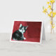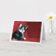 Kitten noir et blanc sur le canapé rouge Carte de voeux. Vous pouvez facilement customiser ce produit gratuitement si vous souhaitez ajouter un libellé ou changer la couleur de l'arrière - plan.