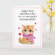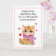 This watercolor artwork features a cute kitty cat wearing a pink and purple scarf and a heart tag, with little hearts floating above her. Paired with a funny riddle, this design makes a charming Valentine’s Day card for anyone who loves cats.