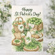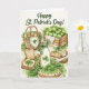 Célébrez la Saint-Patrick avec le charme intemporel de l'Irlande. Cette carte de vœux traditionnelle de la Saint-Patrick présente une illustration de cuisine de chaumière irlandaise cosy remplie de pains soda irlandais, de pommes vertes, de lait frais et de trèfles — un signe chaleureux d'héritage, de maison et d'hospitalité.