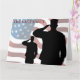Honore les morts avec le dernier salut. En l'honneur de nos membres déchus des forces armées. Saluant les soldats avec le drapeau américain dans l'arrière - plan.