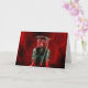 La Faucheuse Grim s'assit sur son trône de crânes, tenant son scythe, avec la foudre rouge sang clignotant dans l'arrière - plan. La carte à l'intérieur dit : Joyeux anniversaire.