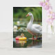 Une scène sereine dépeint une oie blanche debout sur la rive d'un étang, en regardant au-dessus d'une boule flottant dans un anneau gonflable coloré. Tout le texte peut être modifié.