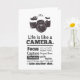 Une carte de voeux en noir et blanc avec une photo d'un appareil photo avec une citation éclairante et motivante sur la vie et comment nous devrions ajuster notre point de vue. "La vie est comme une caméra. Se concentrer sur ce qui est important, saisir les bons moments, se développer à partir des négatifs, et si les choses ne se passent pas - prendre un autre coup." L'auteur de la citation est inconnu. Le design et la citation est idéal pour les photographes ou pour toute personne qui a besoin de me prendre dans la vie. Le design est traité avec un effet de grunge léger.