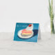 Douce, joyeuse et pleine de charme, cette carte de vœux présente une peinture acrylique originale d'une délicieuse tranche de gâteau aux fraises recouverte de crème fouettée et d'une cerise rouge vif. Sur un fond bleu vibrant, le dessert est posé sur une assiette blanche classique, créant une nature morte ludique qui se révèle à la fois nostalgique et amusante.