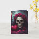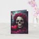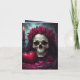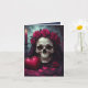 Un crâne frappant est assis sereinement sous une capuche de velours, ses yeux creux captant la lueur chaude et tremblante d'une seule bougie. Une couronne de roses rouges profondes couronne l'os. À côté, une boîte en forme de cœur repose parmi des pétales de rose dispersées, une harmonie de romance et de ruine. La palette est somptueuse et dramatique : des magentas et des bourgognes rose-sang se détachent sur des noirs de minuit et des reflets sarcelle fumée. Le design semble vivant malgré son sujet macabre. La lumière des bougies projette de longues ombres dansantes, transformant la décomposition en élégance.