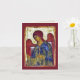 L'Archange Gabriel Biblique chrétienne scène religieuse Noël carte de voeux de Noël. L'Ange Gabriel, qui annonça la naissance du Christ à Marie, montré avec des ailes rouges pourpres, dépeint de couleurs riches et vibrantes. L'oeuvre date de la période byzantine de l'histoire chrétienne primitive. Une carte de voeux chrétienne parfaite imprégnée de foi et de tradition.