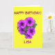 Carte L'anniversaire assez pourpre de fleurs ajoutent