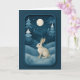Un lapin blanc est assis tranquillement sur une colline enneigée sous une pleine lune lumineuse dans cette illustration en couches de style découpage en papier. Entourée de pins, de collines ondoyantes et d'un ciel nocturne rempli d'étoiles, la scène évoque une immobilité émotionnelle et une douce merveille. La posture douce du lapin et la palette de bleus froids créent une composition tranquille et onirique.