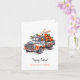 Lapin de Pâques en vintage rustique carte de voeux camion. Aquarelles rustiques et lineart style lapin lapin mignon conduisant un camion vintage rétro plein de carottes. Texte personnalisé avec un joli script tendance.