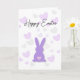 Souhaitez une joyeuse Pâques avec cette carte de Pâques mignonne, représentant un lapin violet entouré de cœurs violets et gris. Message intérieur : De la part d'un lapin qui vous aime !