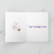 Ce lapin de Pâques adorable collectionne des œufs de Pâques colorés pour les mettre dans son panier en osier marron. Le fond présente un ciel bleu et une pelouse verte, avec de délicates fleurs violettes. À l'intérieur, le panneau gauche comporte une petite image du lapin de Pâques et de son panier. Le panneau droit comporte une zone de texte que vous pouvez personnaliser avec votre propre message.