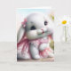 Carte Lapin de Pâques portant une robe de dentelle rose