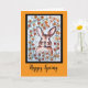 Ce lapin accueille le printemps avec des fleurs orange et jaune. C'est une façon charmante de souhaiter le printemps en envoyant des messages personnels à votre famille et à vos amis.