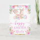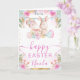Partagez vos vœux chaleureux de printemps avec cette carte de Pâques joyeuse mettant en vedette un adorable lapin entouré d'œufs de Pâques décorés, de ballons pastel doux et de florales aquarelles délicates. La palette lumineuse et édifiante ainsi que les motifs saisonniers festifs créent un design joyeux parfait pour célébrer Pâques avec les amis et la famille. Les bordures florales en rose, bleu et vert ajoutent une touche printanière fraîche, tandis que les lettrages élégants donnent à la carte une sensation personnelle et sincère. Le texte personnalisable vous permet d'ajouter un nom ou un message pour un souvenir de Pâques unique.