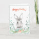 Un mignon lapin d'aquarelle entouré de fleurs et de plantes. Personnalisez facilement l'intérieur de la carte en quelques clics seulement.
