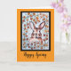 Ce lapin accueille le printemps avec des fleurs orange et jaune. C'est une façon charmante de souhaiter la bienvenue au printemps en envoyant des messages personnels à la famille et aux amis.