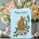 Un joli lapin brun avec des fleurs roses sur fond bleu clair