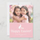 Carte Lapin rose et blanc avec photo personnalisée de Pâ