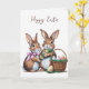 Couple de lapin d'aquarelle mignonne avec des oeufs de Pâques dans un panier sur un arrière - plan blanc. Le texte est modifiable.