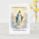 Ce design serein honore L'Assomption de Marie, une célébration de son corps et de son âme emmenés dans le ciel. Entourée de nuages doux, de lumière et de détails floraux, son image reflète la grâce, la pureté et la confiance dans la promesse de Dieu. Sa fête est célébrée le 15 août, mais cette carte peut être partagée à tout moment pour élever quelqu'un dans la foi, marquer une dévotion mariale, ou tout simplement prendre soin, se connecter, ou bénir un coeur avec la paix.